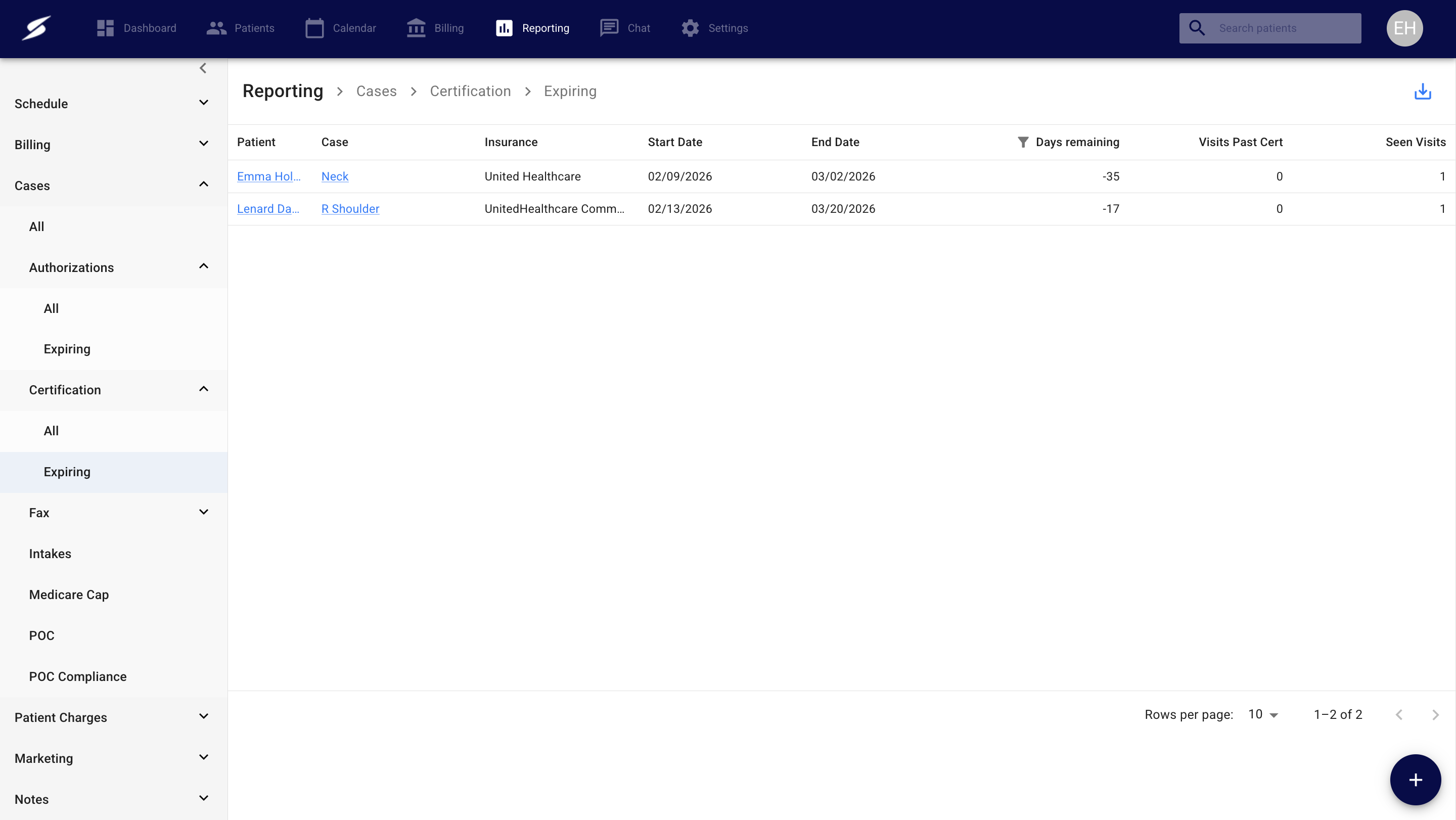 Visits used: how many visits have been seen within the certification period (notes must be signed)